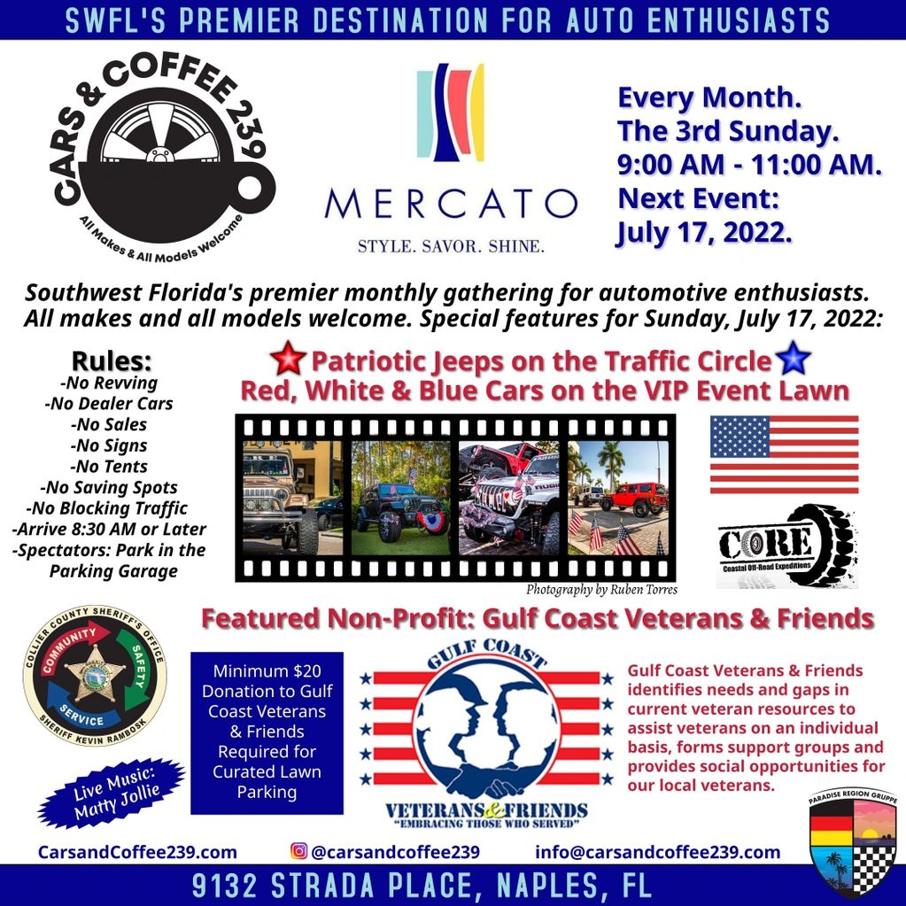 Cars and Coffee at Mercato Naples Marco Island Everglades. Check back soon for details about our featured nonprofit and cars of the month. Emerald Coast Cars Coffee.